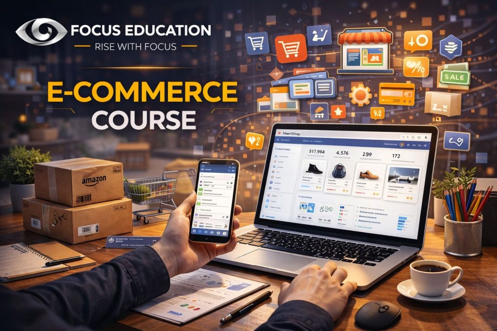 Focus Education provides a complete E-Commerce training program that equips students with the practical knowledge and technical skills required to build and manage successful online businesses.